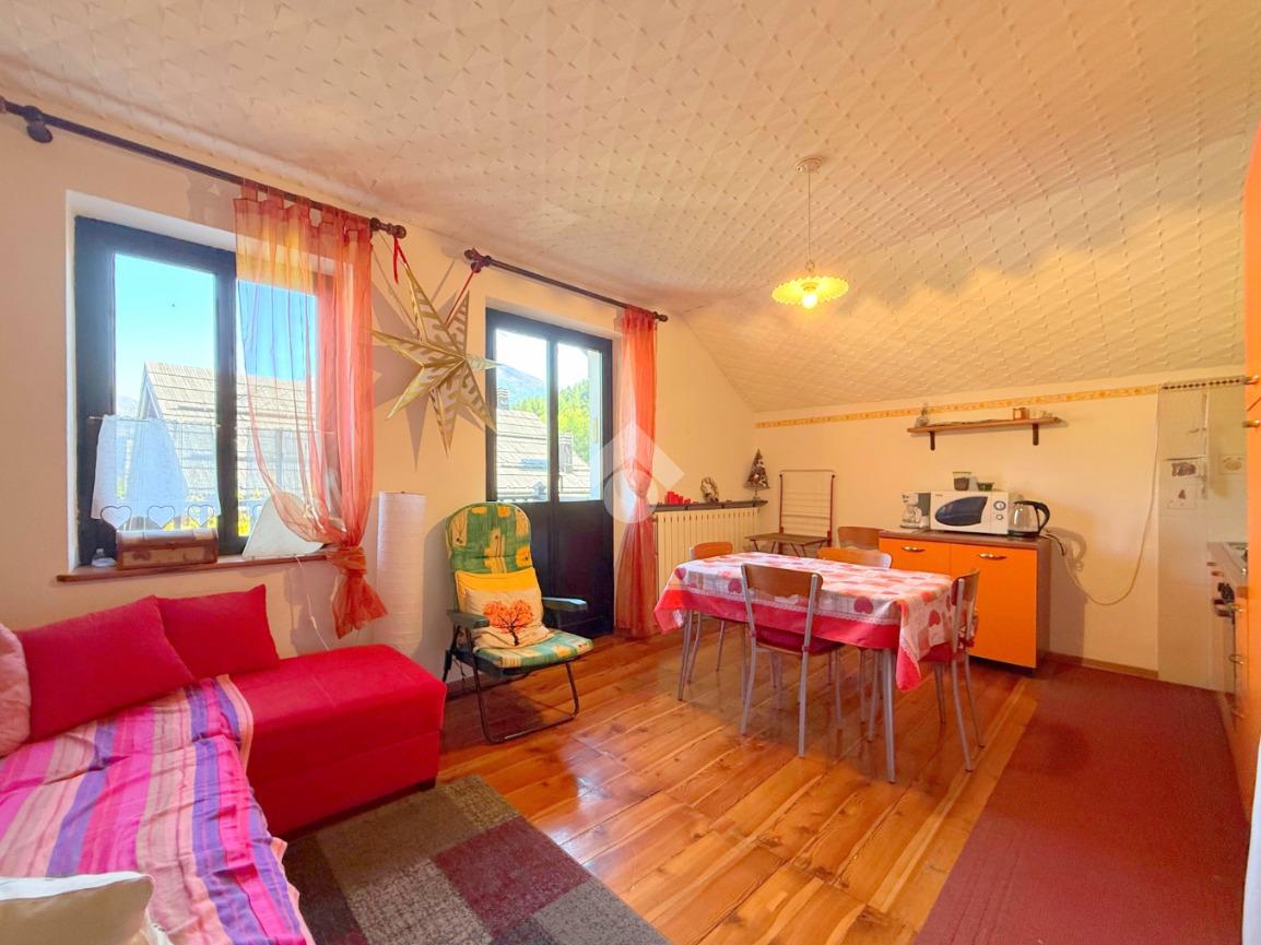 Al primo piano di una palazzina tranquilla, accogliente trilocale composto da soggiorno luminoso con angolo cottura, due camere da letto, bagno e balcone con vista.