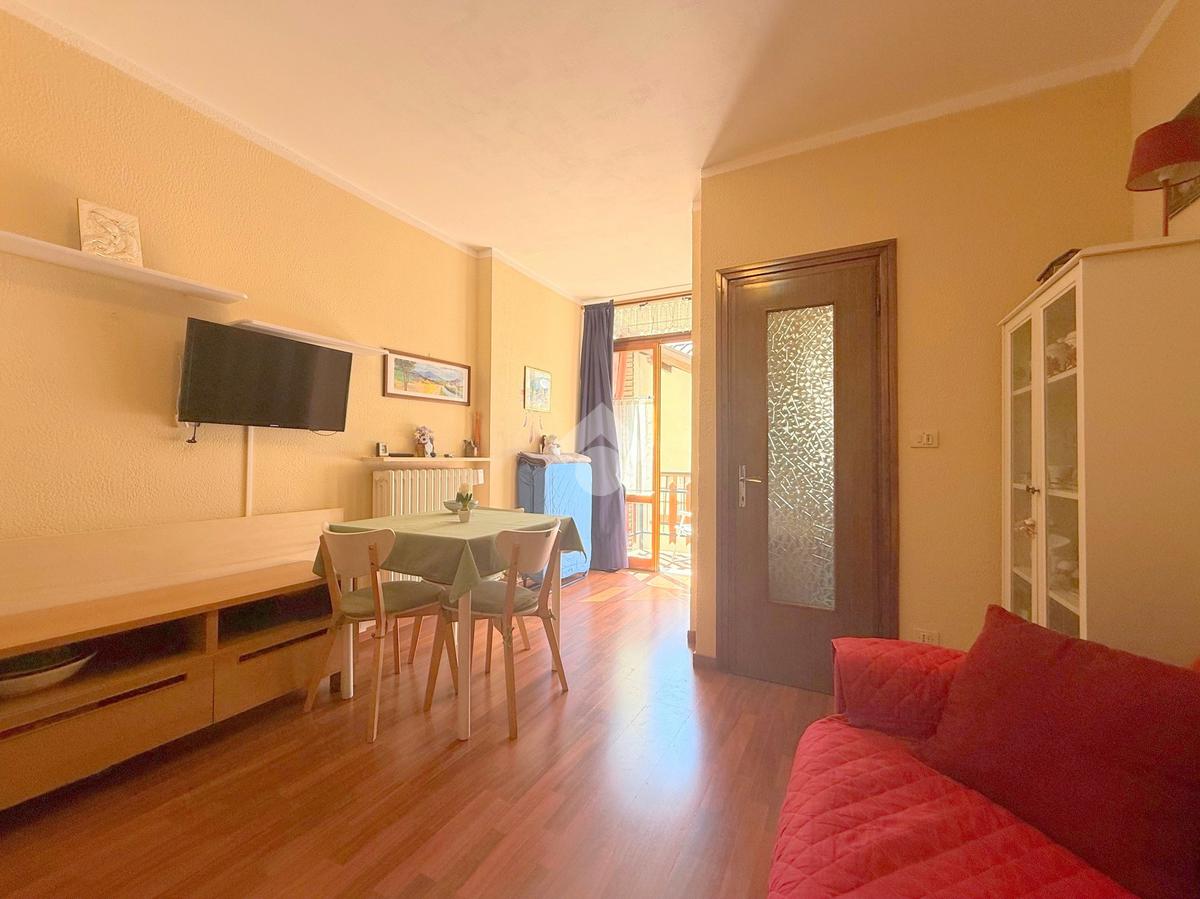 IN TRATTATIVA. Zona centrale e comoda ai servizi del Paese e di Via Medail. Monolocale situato al secondo piano con ascensore. Composto da ingresso, soggiorno con divano letto, cucinino separato. Bagno con doccia e finestra. Balcone con vista sulle montagne.
